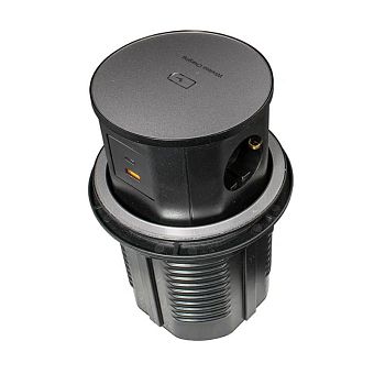 Блок розеток встр. круг. d120мм, 16А, 3 пост, черн., 1USB, 1Type-C, беспр. зарядка, провод 1,8м