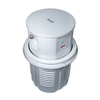 Блок розеток встр. круг. d120мм, 16А, 3 пост, бел., 1USB, 1Type-C, провод 1,8м
