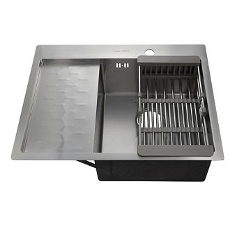 Мойка 63х50 см правая толщина 3,0 х 0,8/200 мм сифон с переливом + корзина