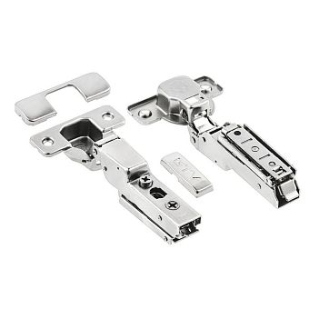 Петля GTV PRESTIGE Clip-On вкладная 102°, с монт. планкой H0, декор. накладки, саморезы, с доводчиком