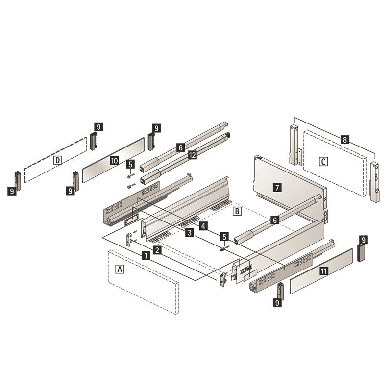 • Полное выдвижение: обеспечивает легкий доступ к содержимому ящика.