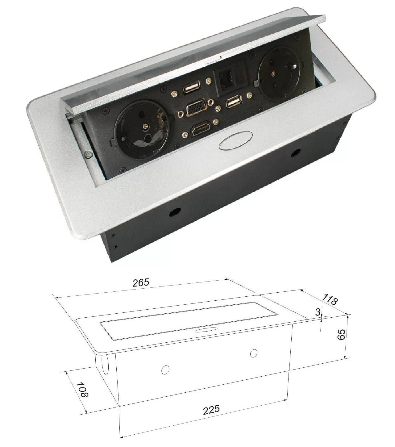 Блок специально разработан для удобства размещения и коммутации техники на рабочем месте, в офисе, конференц-зале. Благодаря выдвижной конструкции, экономит место в рабочей зоне.