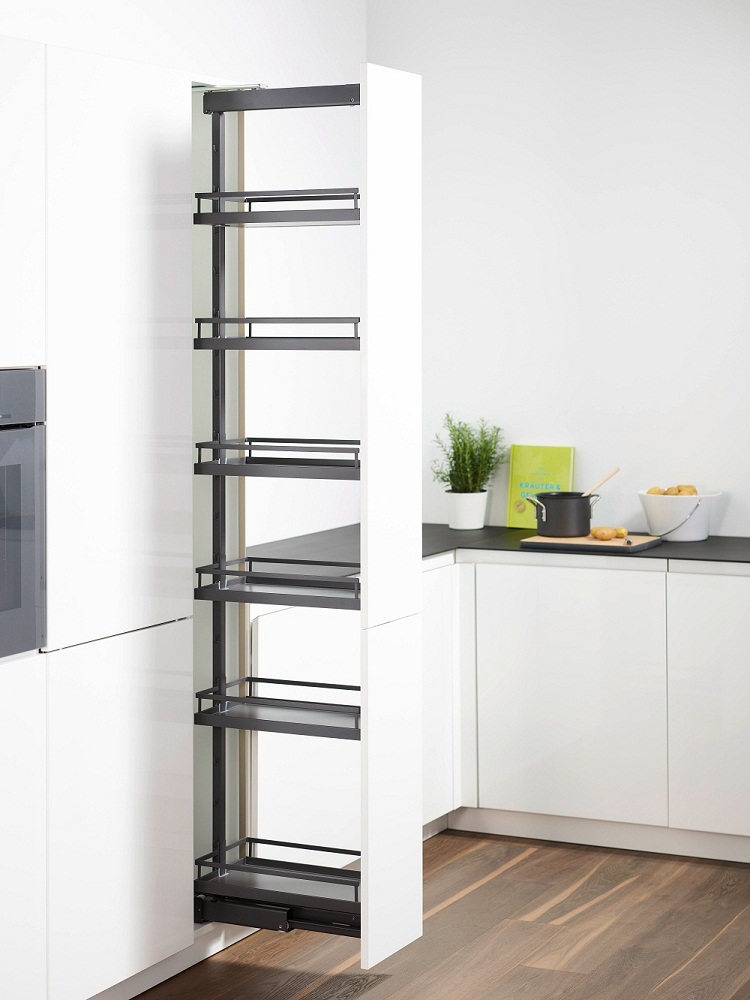 Высокая колонна для узких шкафов благодаря особому механизму полностью выдвигается из корпуса, открывая легкий обзор и доступ с двух сторон ко всему содержимому. Внутреннее пространство максимально используется для хранения. Система дополняется органайзерами Ю-Бокс, помогающими эффективно разместить предметы разных размеров и объемов. Механизм выдерживает нагрузку до 100 кг, плавное открывание и закрывание обеспечивается демпферами.