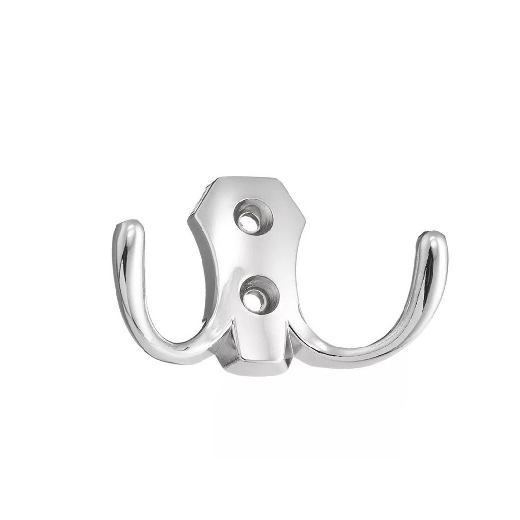 Крючок мебельный 2-х рожковый средний хром