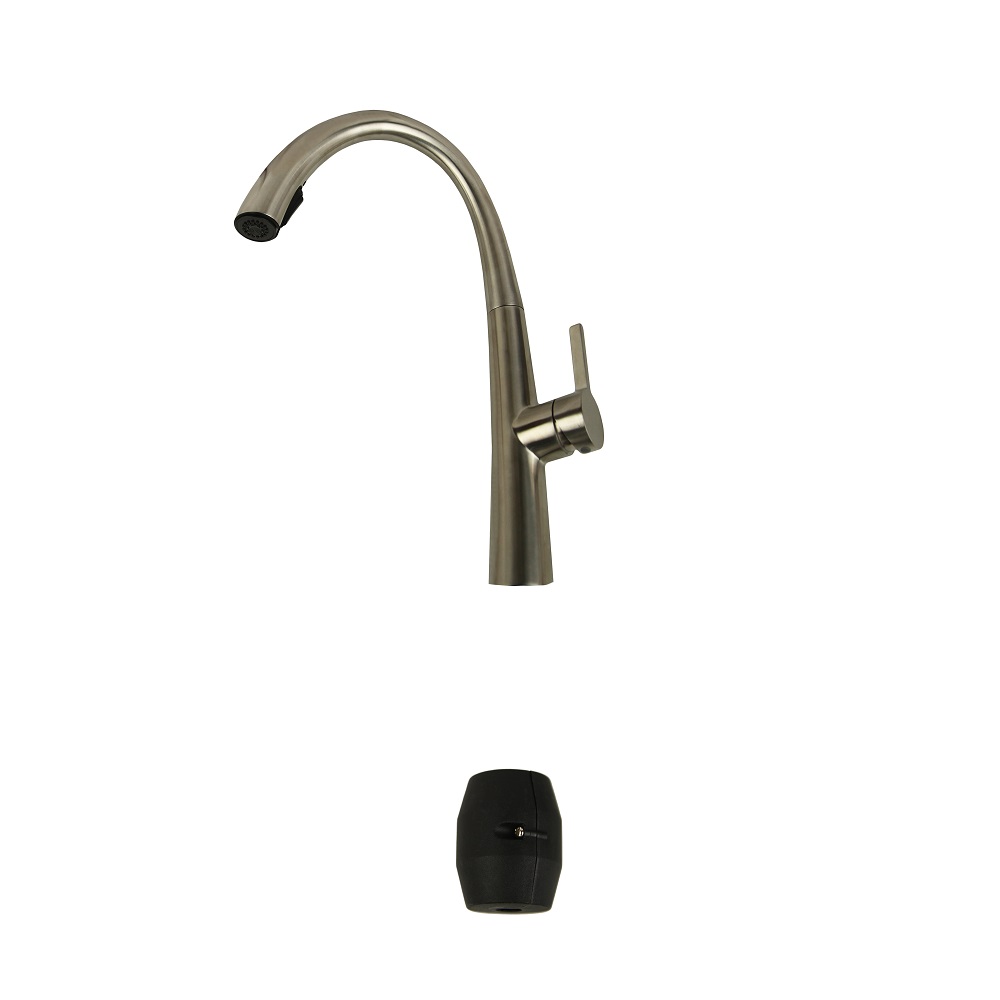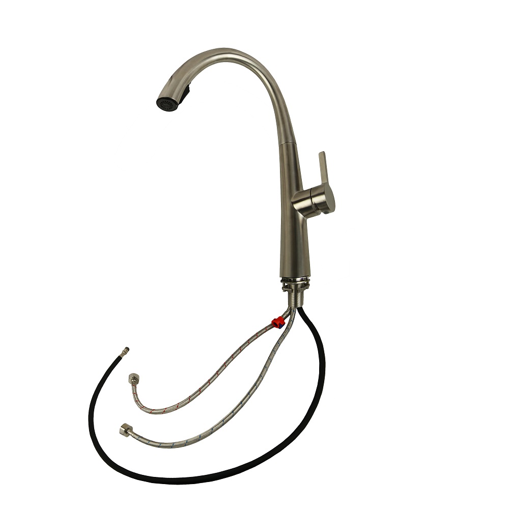 Кухонный смеситель М-2, С образный, брошированная нержавеющая сталь(GMF)