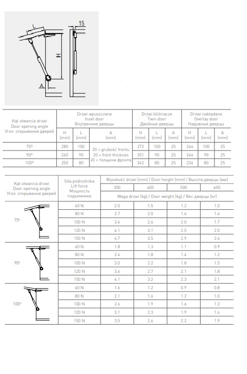 Модель оснащена механизмом подъемника, который способен поддерживать вес до 12 кг, что делает его идеальным для использования с различными типами шкафов и ящиков. Для смягчения удара и повышения комфортности эксплуатации рекомендуется устанавливать два газовых подъемника на один фасад, что поможет обеспечить оптимальное распределение нагрузки.