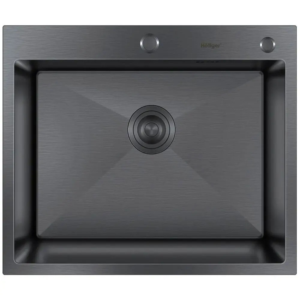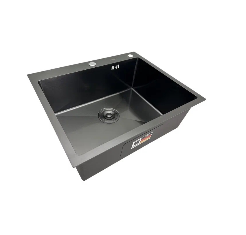 Мойка для кухни HOFFGER 6045 BLACK. Многофункциональная кухонная мойка Hoffger HFG-6045B Black чёрный графит, с двумя отверстиями под смеситель и дозатор.Изготовлена из высококачественной нержавеющей стали AISI304 с PVD покрытием, которое придает изделию особую прочность и коррозионную устойчивость. Цвет графит при ярком освещении темно-серый, при приглушенном приближенно черный. Толщина борта мойки 3 мм, толщина чаши 1 мм. Мойка имеет закруглённые внутренние углы и дно с небольшим уклоном, чтобы вода не застаивалась в чаше - эти свойства облегчают дальнейший уход за ней. Имеет шумоизолирующее покрытие и накладки с обратной стороны, которые делают мойку тихой при эксплуатации. Монтаж врезной над столешницей, накладная. Устанавливается на силикон или жидкие гвозди, прижимается собственным весом, крепежи в комплект не входят.