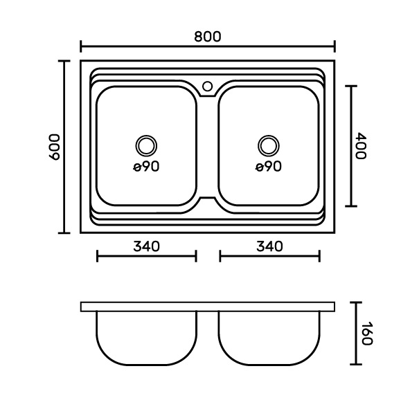 Накладная мойка FABIA с двумя чашами из нержавеющей стали отличный вариант для кухни, она прослужит многие годы. Классическая форма и хромированный цвет гармонично впишутся в любой интерьер и никогда не выйдут из моды. Оптимальный размер позволяет свободно мыть посуду, без страха её разбить. Мойка устанавливается на тумбочку. Практичная площадка, расположенная по центру, даёт возможность вмонтировать любую понравившуюся модель смесителя. В комплекте двойной сифон с переливом. Габаритные размеры: ширина 600 мм, длина 800 мм, глубина 160 мм, толщина стали 0,6 мм. Вес - 4,900 кг, объём - 0,03921 м3.