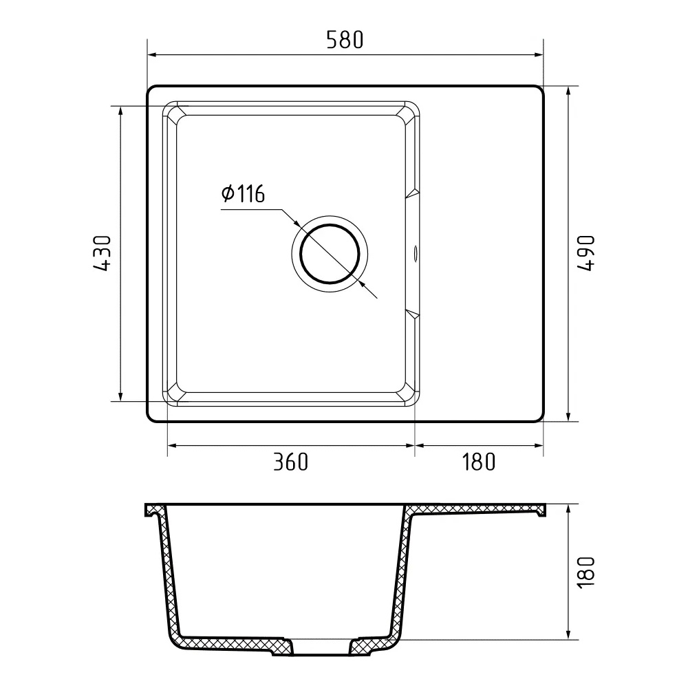 Эта модель является оборачиваемой: основная чаша может быть установлена как справа, так и слева, что позволяет адаптировать мойку под любую планировку кухни и индивидуальные потребности в рабочем пространстве.