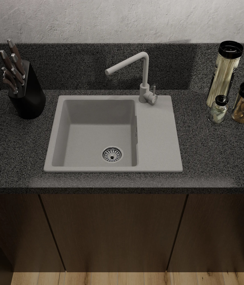 Мойка для кухни GranFest URBAN GF-URBAN 658L – одна из самых востребованных и популярных моделей в серии URBAN. Ее компактное крыло не занимает лишнего места на столешнице, при этом предоставляя удобную площадку для сушки посуды или обработки продуктов рядом с основной чашей.