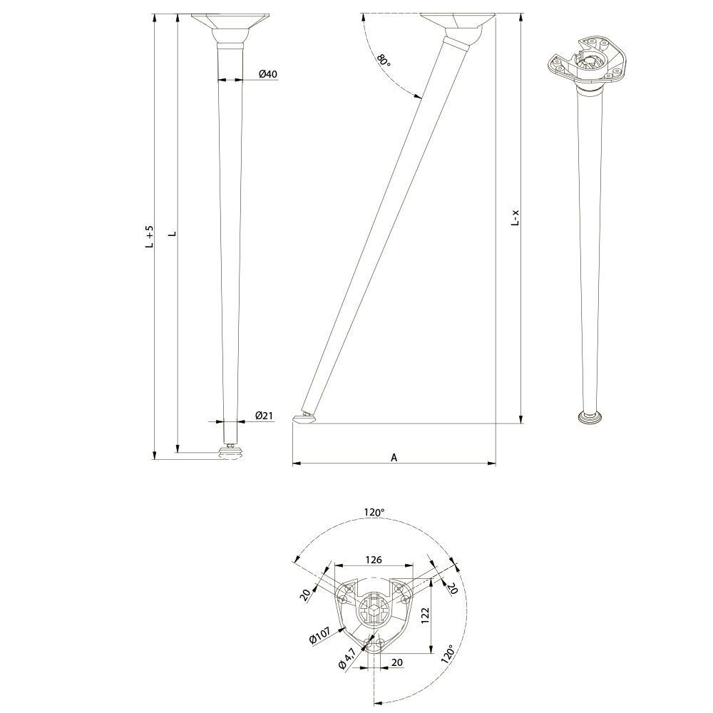 Преимущества включают возможность стабилизации и регулировки стопы опоры на неровном полу с диапазоном высоты от 710 до 715 мм. Также предусмотрена регулировка наклона, что позволяет эксплуатировать опору под прямым углом или под углом 80°.