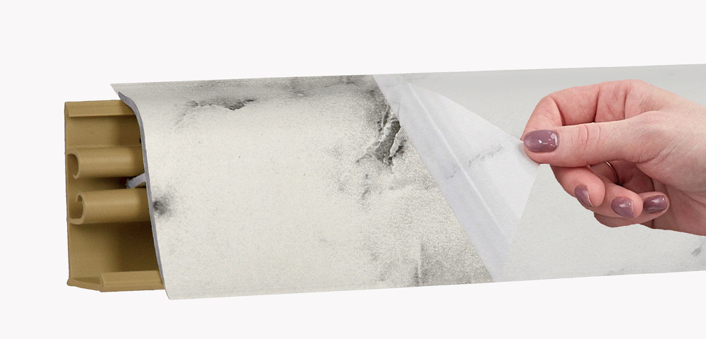 Декор на поверхности плинтуса для столешниц LB 38 покрывает и мягкие края, поэтому они становятся невидимыми, что повышает эстетику отделки.