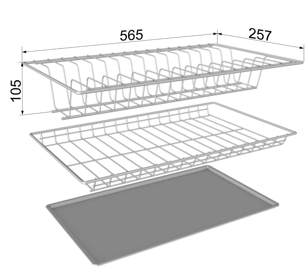 Надежные и удобные полки сушки встраиваются в кухонный шкаф. В комплекте пластиковый поддон.