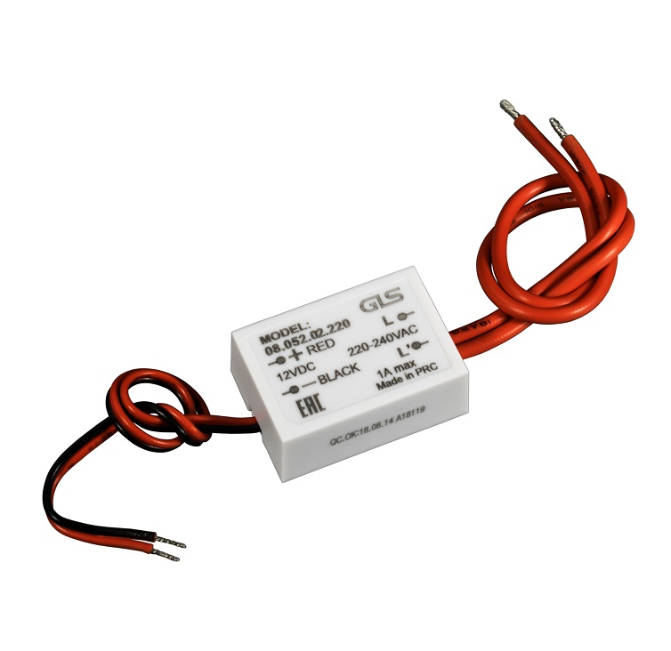 Реле-выключатель обогревателя для зеркала, вх.управления 12VDC провод 0,15м 22AWG, коммутация 220В max 1А, вх. L\выход L' провод 0,15м 0,75мм², 34x24,5x14mm