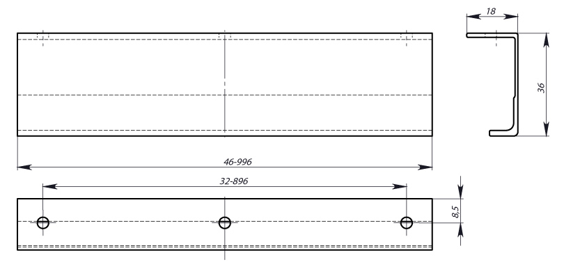 Ручка-профильная PN (011) 03 224/296 мм Черный матовый