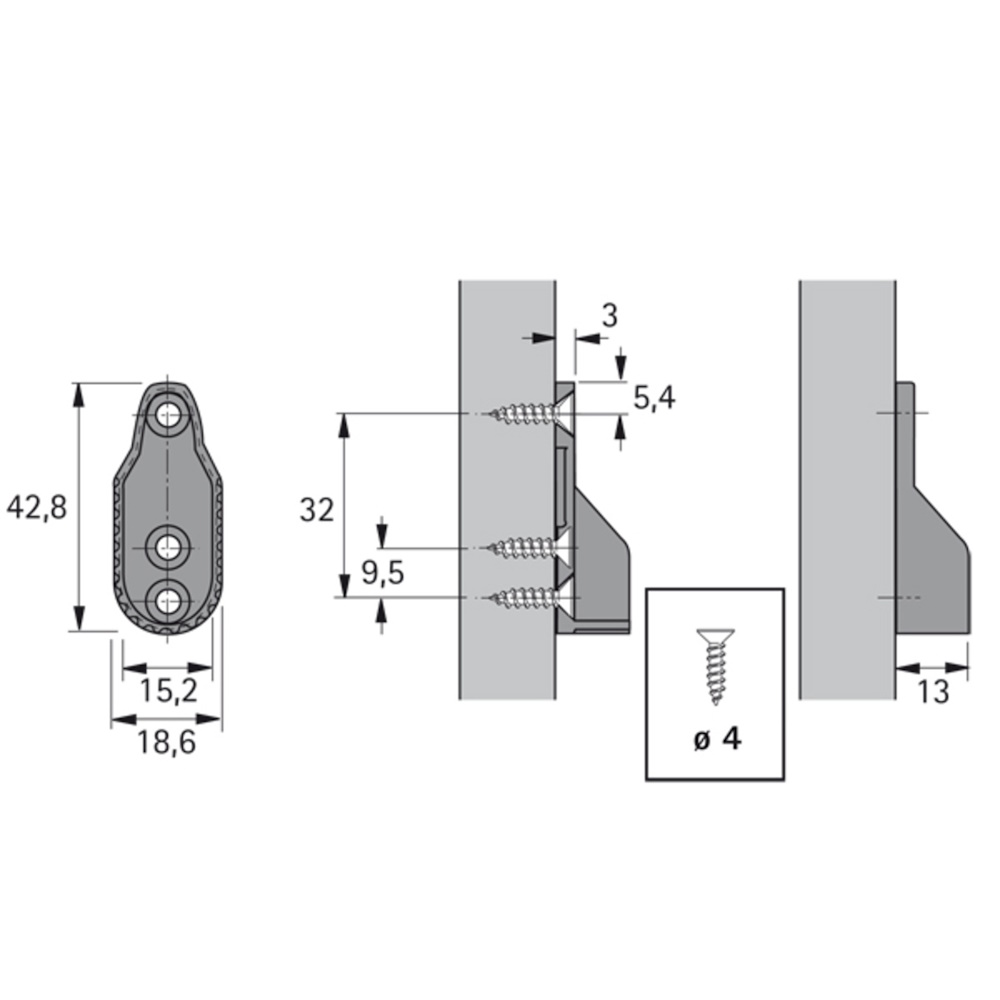 Штангодержатель для овальной трубы SL 322 DD OVAL от Hettich представляет собой литую деталь, предназначенную для надежного крепления штанг в мебели. Модель оснащена тремя отверстиями для винтов, что обеспечивает прочное соединение с поверхностью. Межосевое расстояние составляет 32 мм, что соответствует стандартным требованиям мебельной индустрии. Изготовлен штангодержатель хеттих из цинкового сплава методом литья под давлением, а никелированное покрытие придает изделию привлекательный внешний вид и защищает его от коррозии.