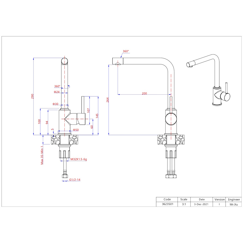 Смеситель 3651 изготовлен из нержавеющей стали и прослужит Вам долгие годы. Поверхность смесителя окрашена в цвета мраморных моек GranFest. Стильный и надёжный смеситель прекрасно впишется в интерьер любой современной кухни. Смеситель оснащен керамическим картриджем, диаметром 35 мм, гибкой подводкой на 60см. Вращение излива позволит Вам удобно располагать его во время мойки посуды. В излив смесителя уже установлен аэратор, это экономит воду во время мытья, и сохраняет тишину.