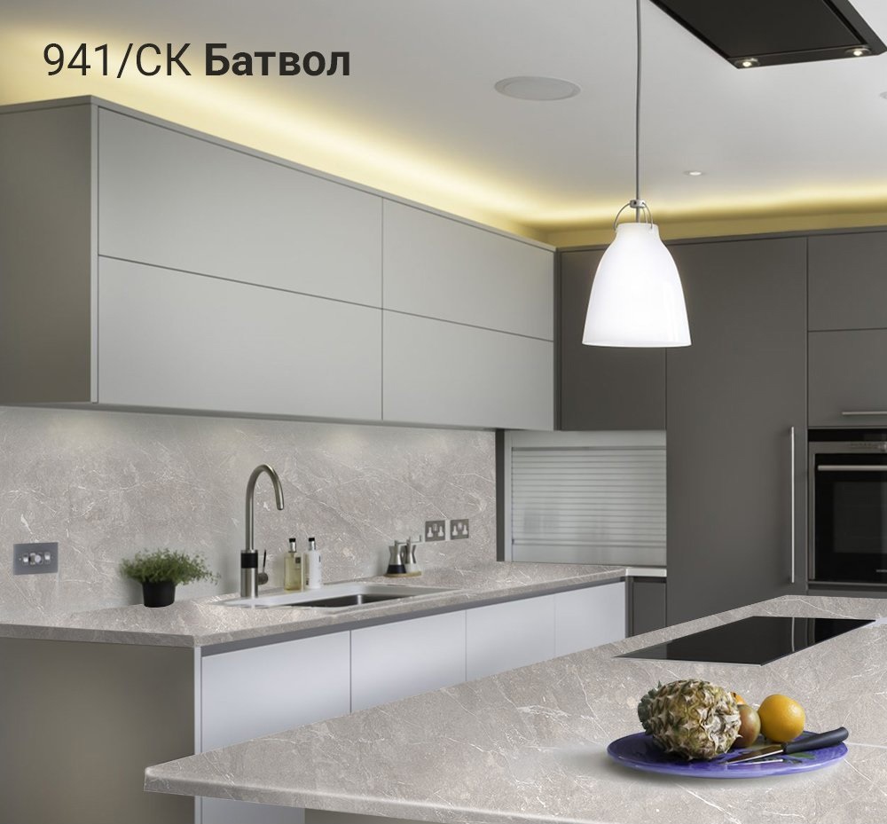 Столешница 3050x600x40 1U 941 Батвол //3 обладает влагостойким слоем, который обеспечивает надежную защиту от разбухания столешницы при частом контакте с водой, благодаря качественной герметизации. Столешницы устойчивы к различным бытовым химиям, чернилам, пищевым кислотам и ультрафиолетовому излучению, что сохраняет их внешний вид и функциональность. Также они обладают высокой стойкостью к механическим повреждениям, таким как царапины и сколы и выдерживают высокие температуры без образования следов от горячей посуды.