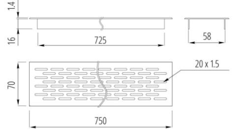 Вентиляционная решетка для цоколя 70*750, алюминий