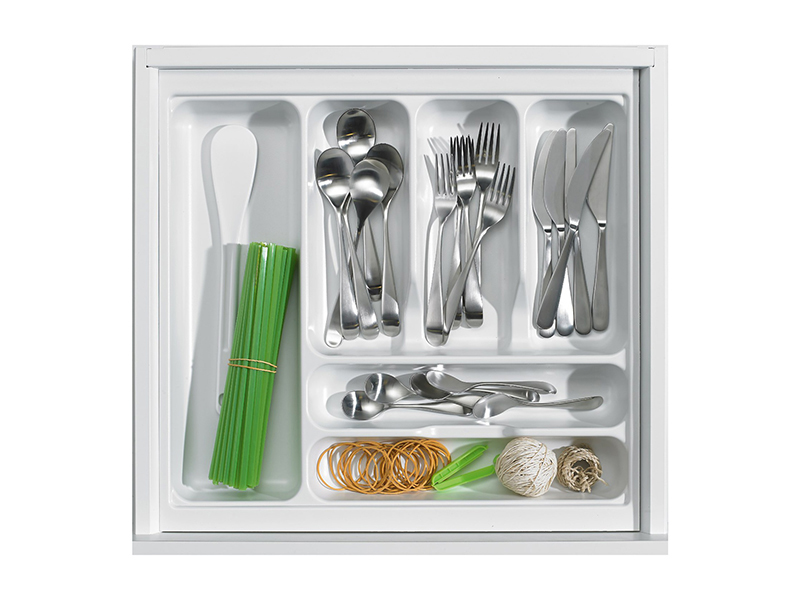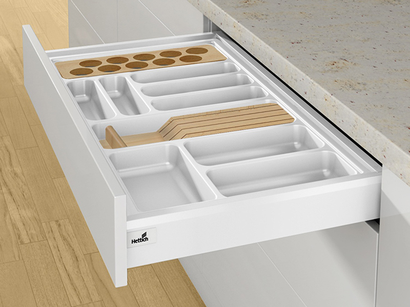 Лоток для столовых приборов Hettich OrgaTray 440 (белый) — это универсальное решение для организации пространства в кухонных ящиках. Изготовленный из прочного пластика, он обеспечивает надежное хранение столовых приборов и помогает поддерживать порядок. Лоток подходит для ящиков ArciTech с высотой боковины от 94 мм и для ящиков InnoTech Atira с высотой боковины от 70 мм, что делает его совместимым с различными системами хранения. Высота лотка составляет 55 мм. Это позволяет эффективно использовать пространство ящика. В качестве дополнительной опции возможна установка держателя для ножей и специй. Лоток хеттих OrgaTray 440 — идеальный выбор для тех, кто ценит порядок и удобство на кухне. Ширина лотка - 700 мм. Глубина - 520 мм.