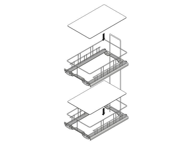 Минимальные внутренние размеры шкафа для установки вставки составляют 262 мм в ширину, 495 мм в глубину и 590 мм в высоту, что позволяет эффективно использовать пространство. Монтаж вставки возможен как слева, так и справа, а также по диагонали, что добавляет гибкости в установке. Не забудьте заказать направляющие полного выдвижения Quadro V6 с демпфером Silent System для максимального комфорта и функциональности.